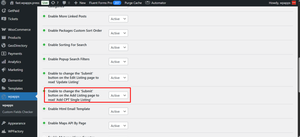 wpapps GeoDirectory Options