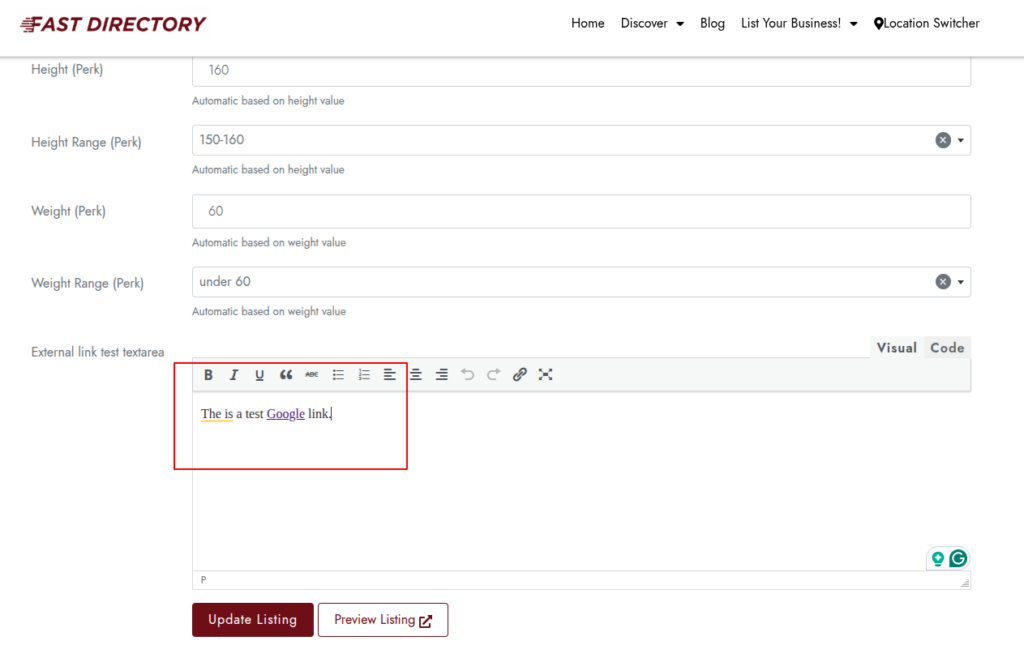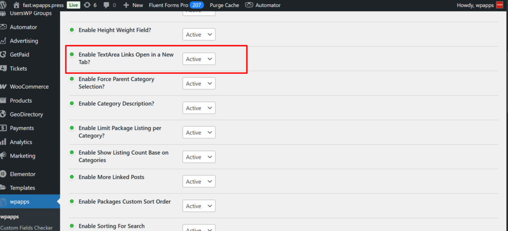 • Navigate to wpapps → geodirectory → Enable TextArea Links Open in a New Tab?