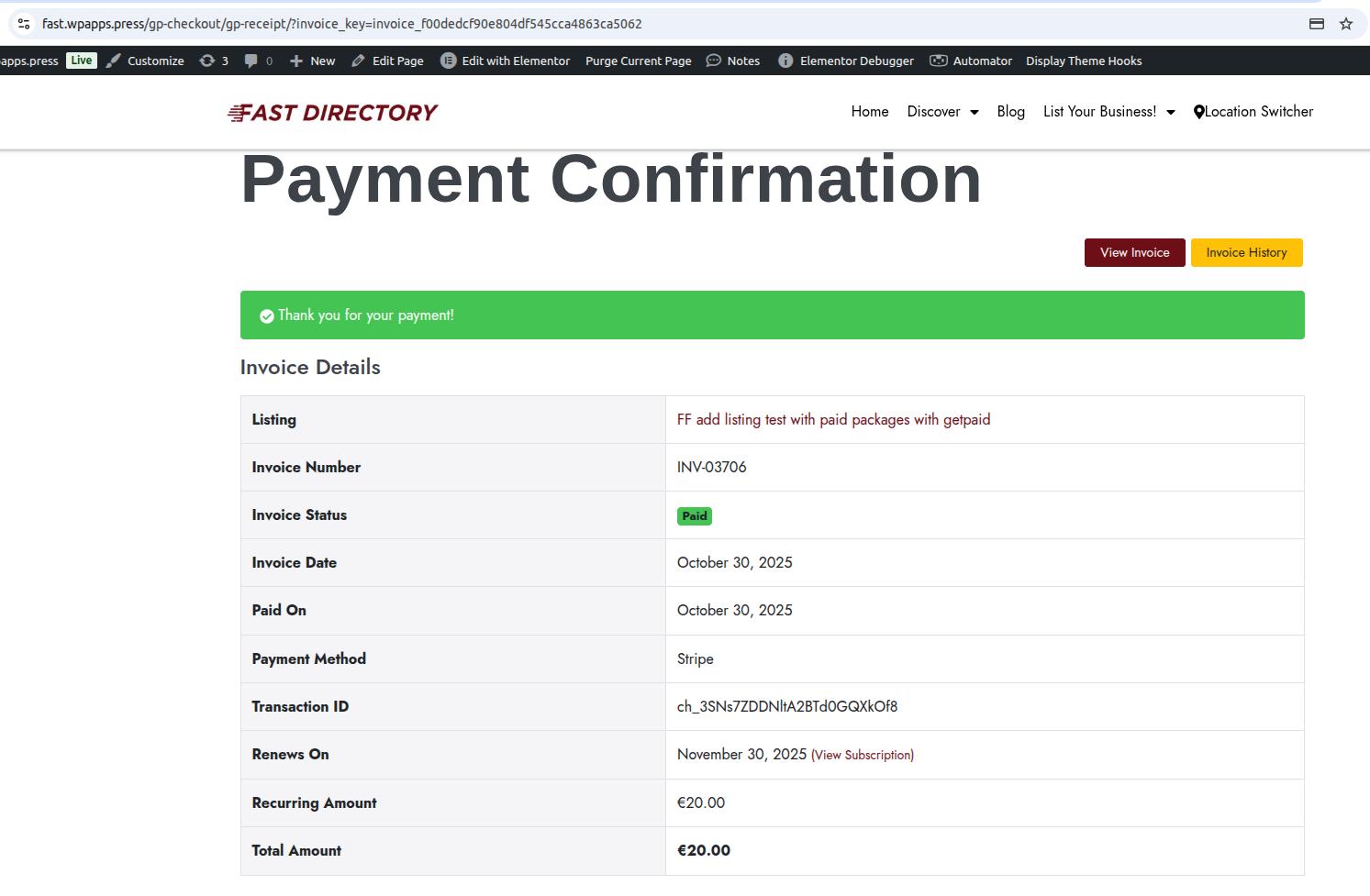 - When using GetPaid, users are redirected to the GetPaid checkout flow, and the listing is published after successful payment.