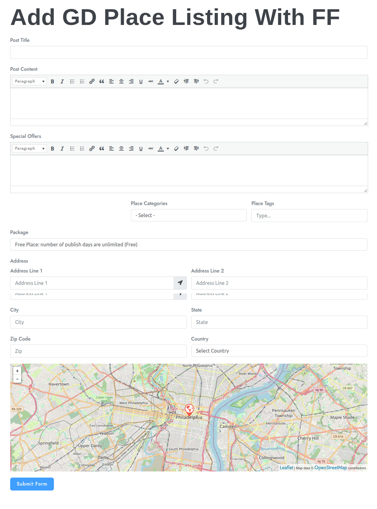Fluent Forms Integration with GeoDirectory