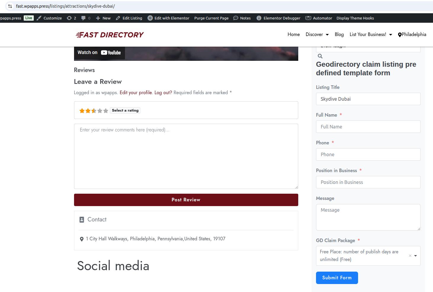 Insert the GD Claim Listing Form shortcode into the Listing Details Page. - Frontend Result