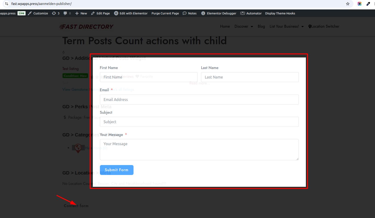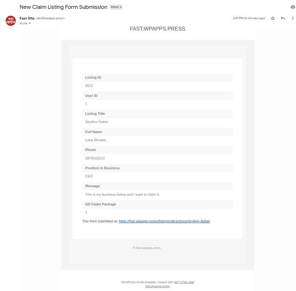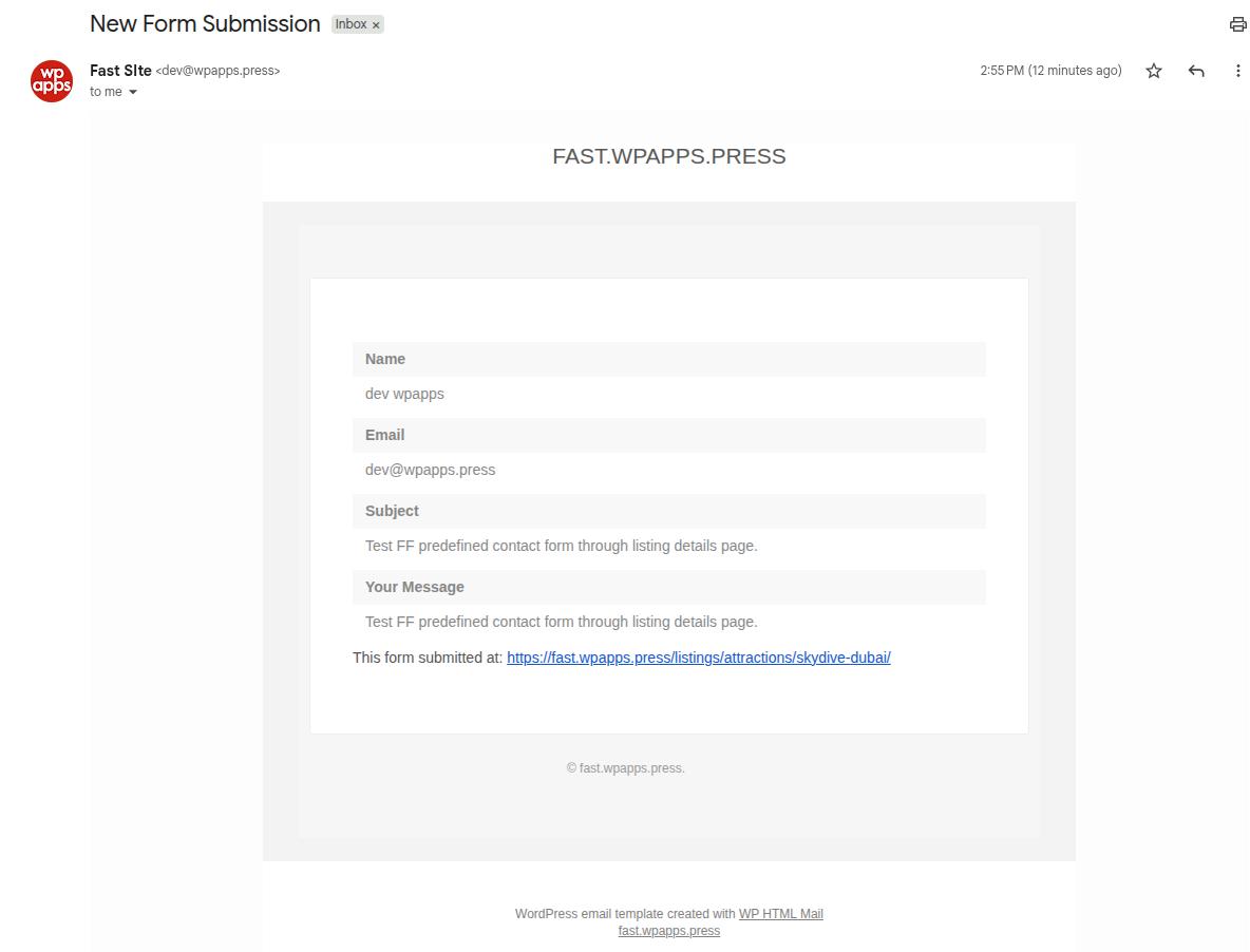 This integration allows forms to automatically connect with GeoDirectory listing data, including listing emails, ownership details, and update links. As a result, users can interact with listings directly from the frontend, while administrators and listing owners receive accurate, listing-specific email notifications.