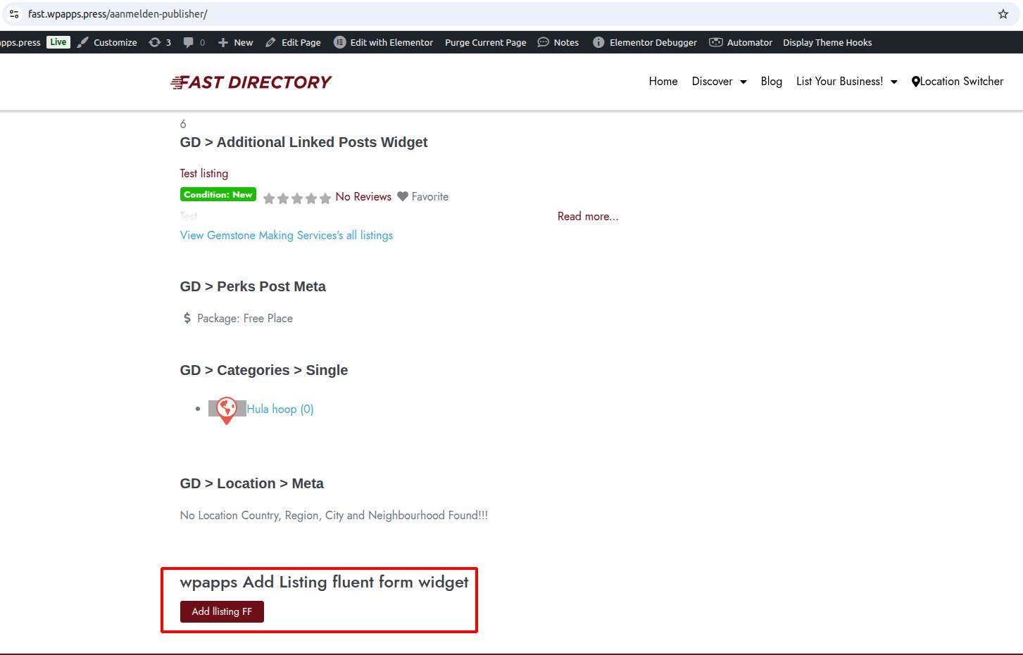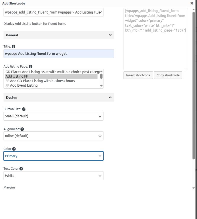 - Add the Add Listing Fluent Form widget to the desired page. Insert the Add Listing Fluent Form shortcode provided by wpapps.