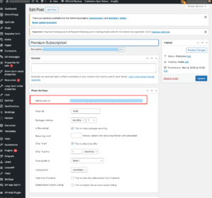WPApps → Publisher Subscription → [Select the Subscription] → Edit → You will find Add to Cart URL