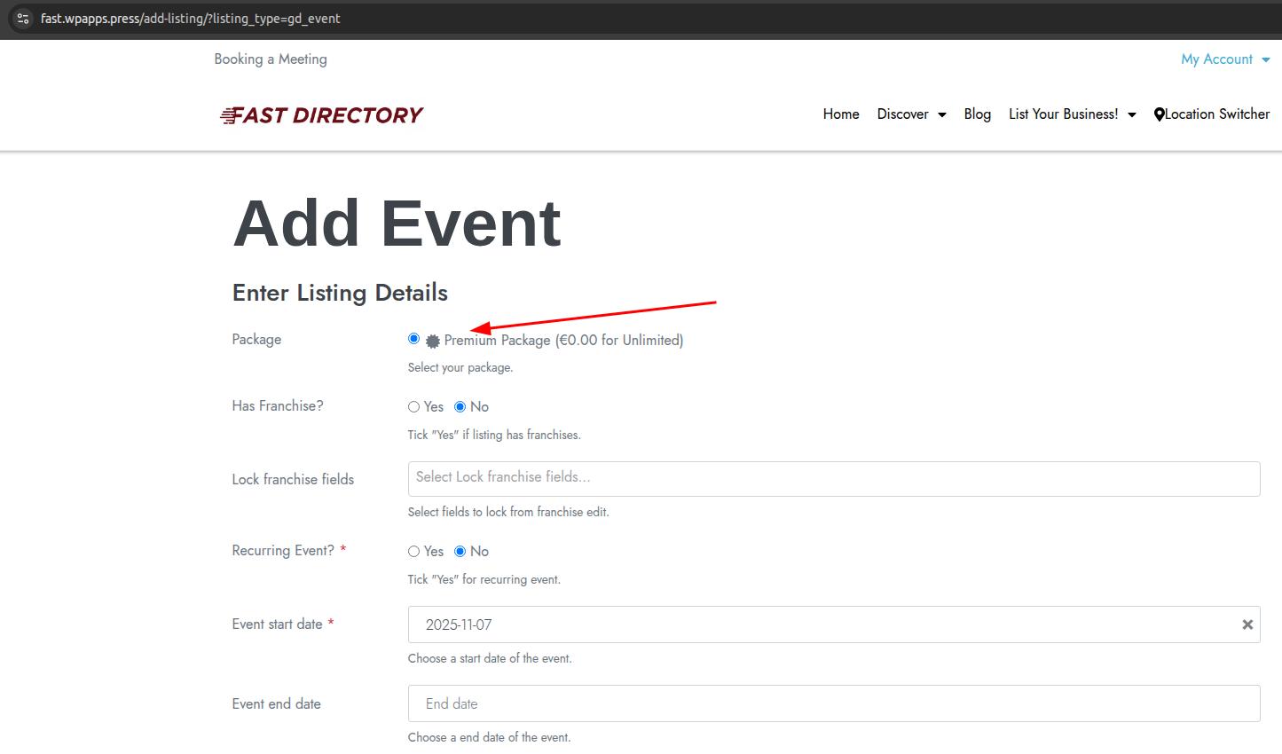 - Add listing package fields show only purchased package: This if we click add new event or post type that exists in the membership.
