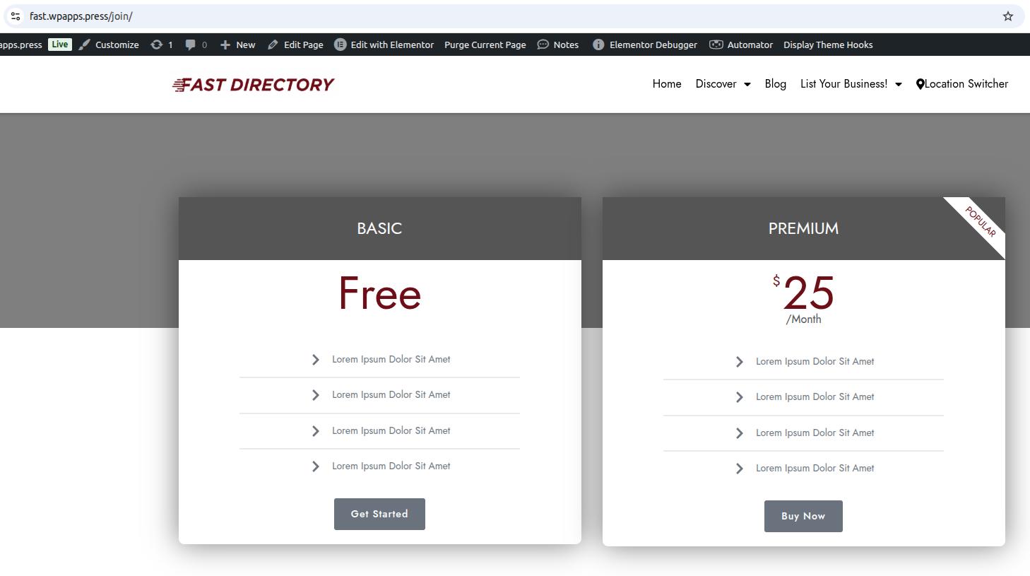 - You can see tutorial Custom Pricing Page for Your GeoDirectory Publisher .